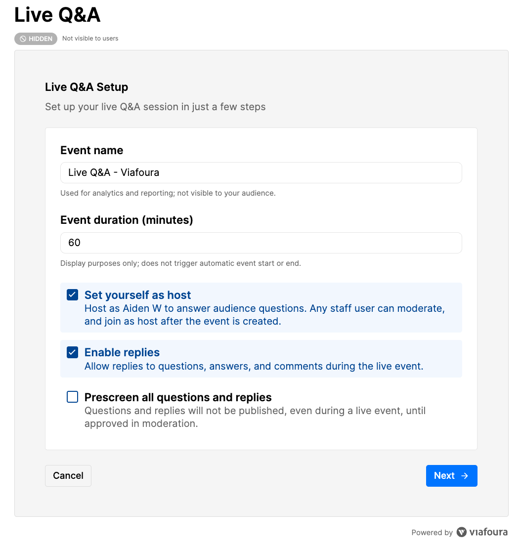 Configure your Live Q&A Event