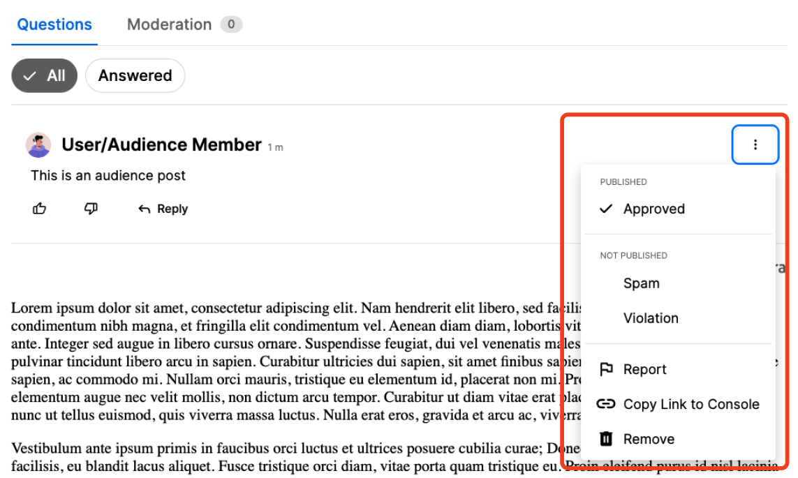 Moderators can take the following actions on any audience post: