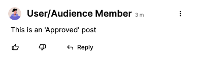 | Approve | Published: The post is approved and made visible to all users. | The “Pending Review” tag disappears and the post appears live. No message is shown. | ![]() |
