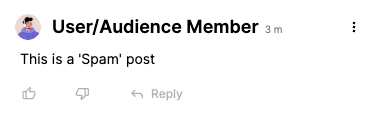 | Spam | Not Published: The post is flagged as spam or unwanted promotional content. It appears published to the original poster but is hidden from all other users. | The post still appears visible to the submitting user only. No message is shown. | ![]() |
