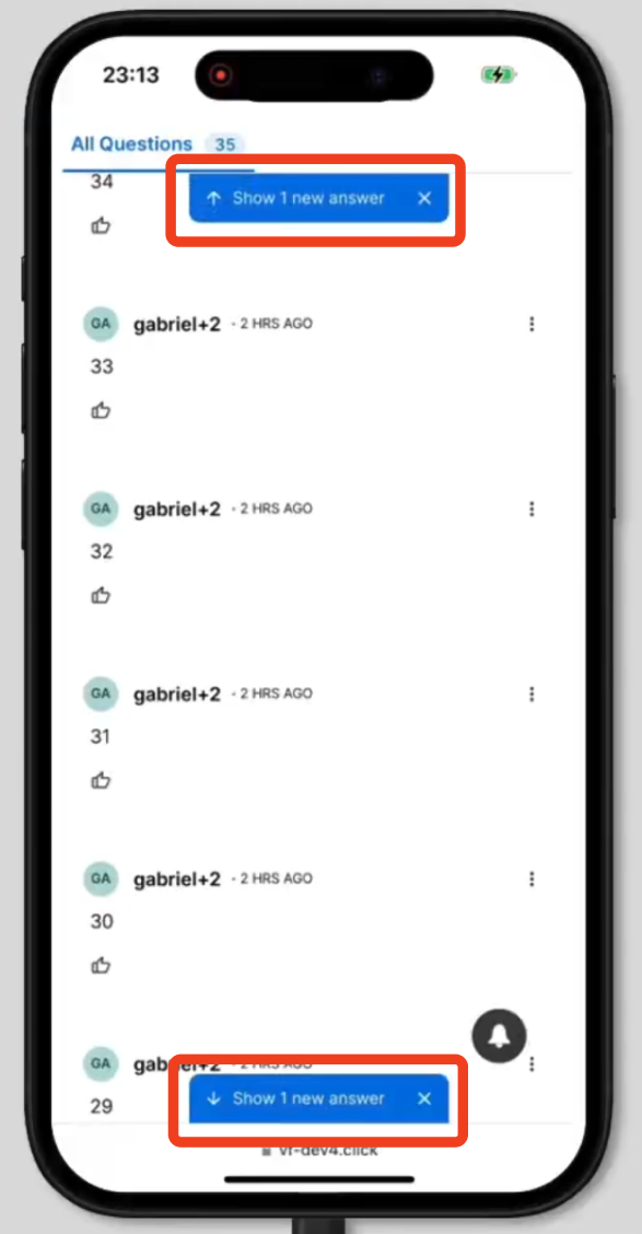 When a new host answer is posted, an inline Show new answer notification will appear within the Live Q&A experience. Selecting this notification brings the user directly to the newly posted answer, making it easier to follow live responses as they come in without needing to manually search through the thread.