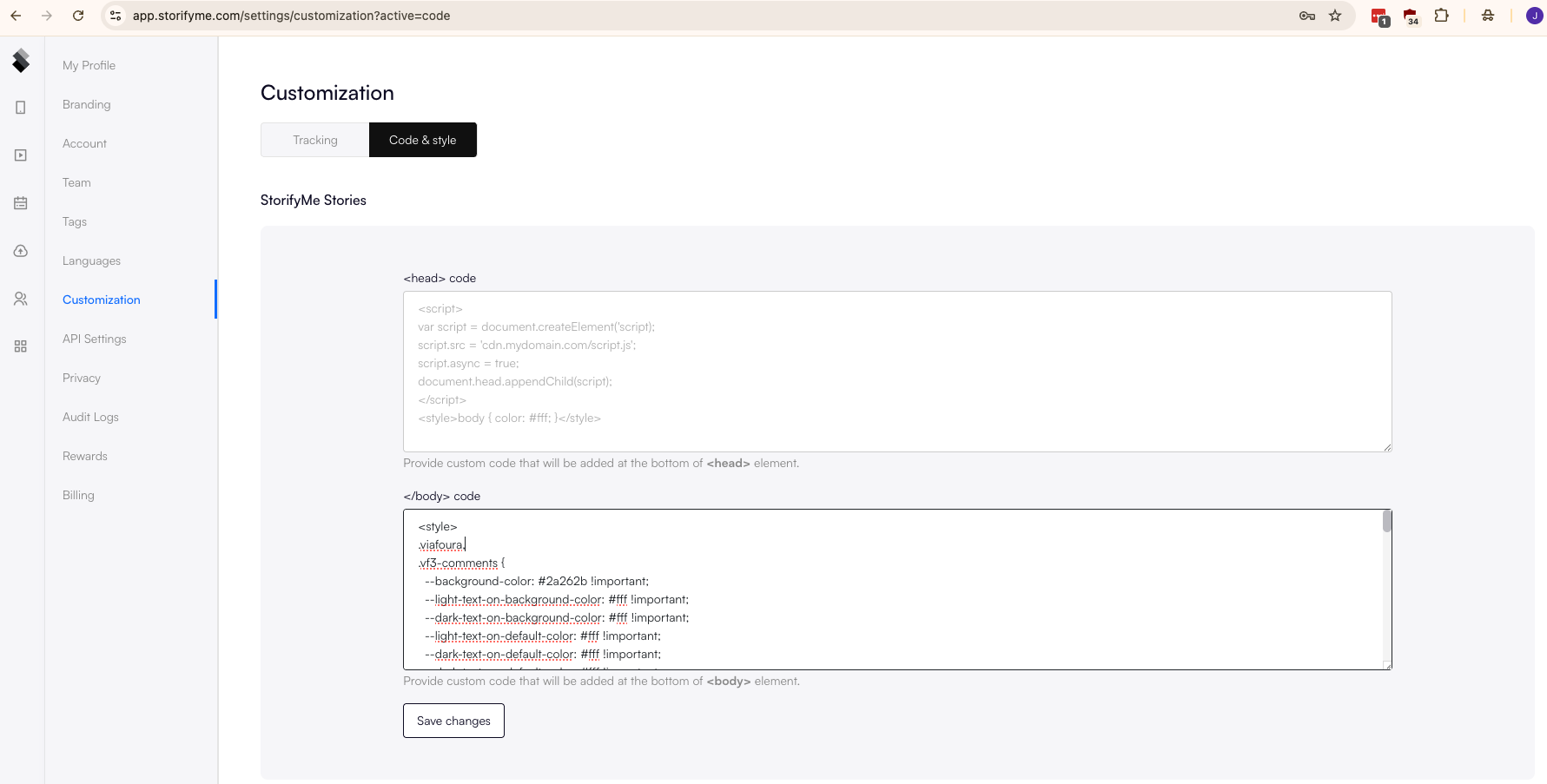 Note: It will take at least 5 minutes for your style changes to be reflected due to caching in StorifyMe.