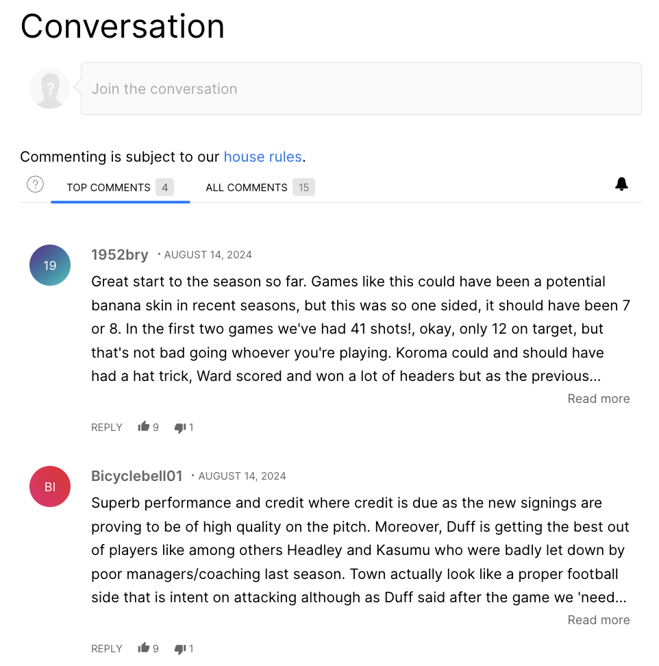 Default View: The "Top Comments" tab becomes the default view once there is a combined total of three Top Comments and Featured Comments. Content Order: This tab displays pinned comments first, followed by manually featured comments, and then "Top comments" "All Comments" Tab: All comments remain available and organized chronologically in a separate "All Comments" tab. Real-time Updates: Top comments do not populate in real-time; they appear when a user refreshes the page or a new user lands on it.